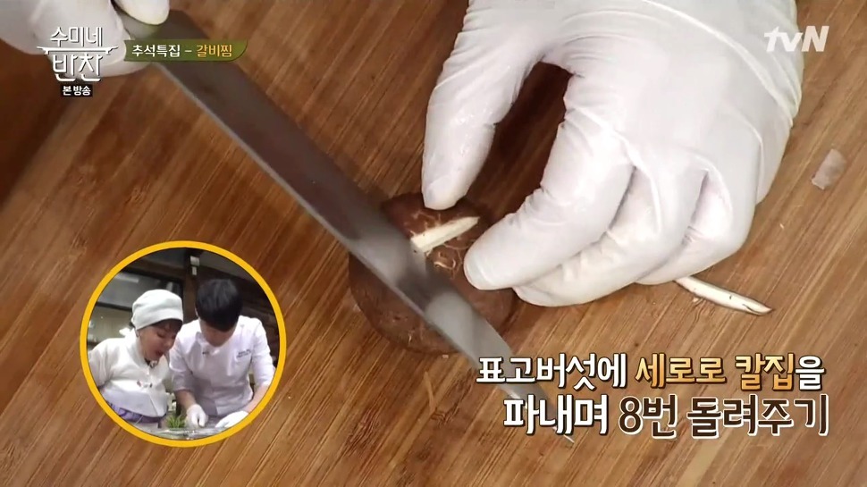 10. 표고버섯 자루(꼭지)를 제거한 뒤 반으로 잘라서 사용해도 되고, 예쁘게 꽃모양처럼 내서 사용해도 됩니다.
