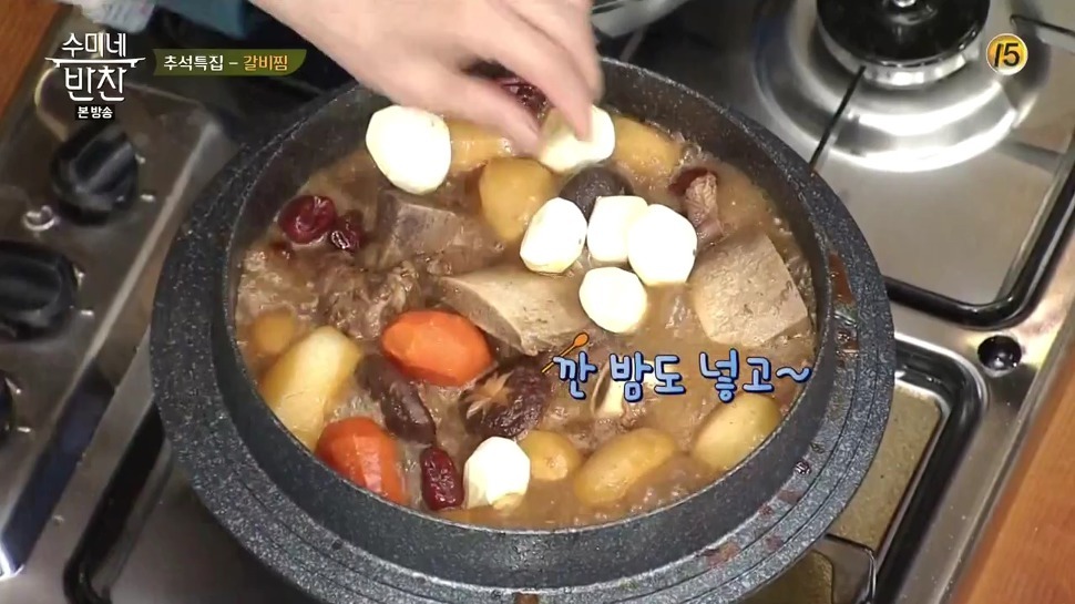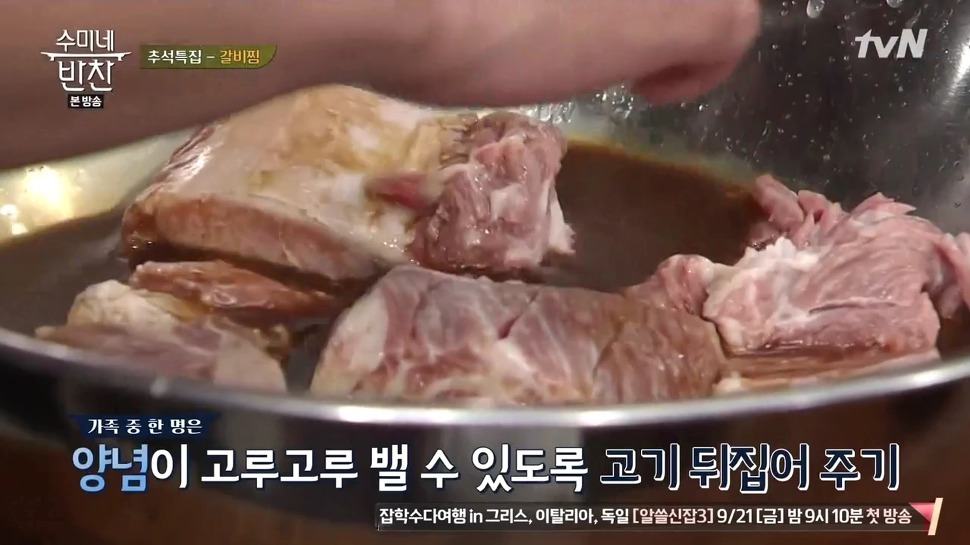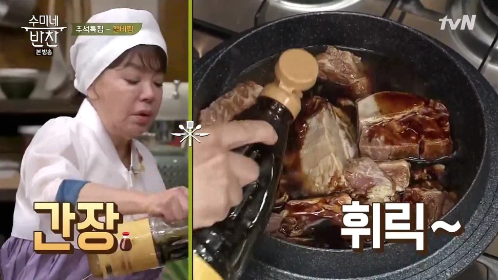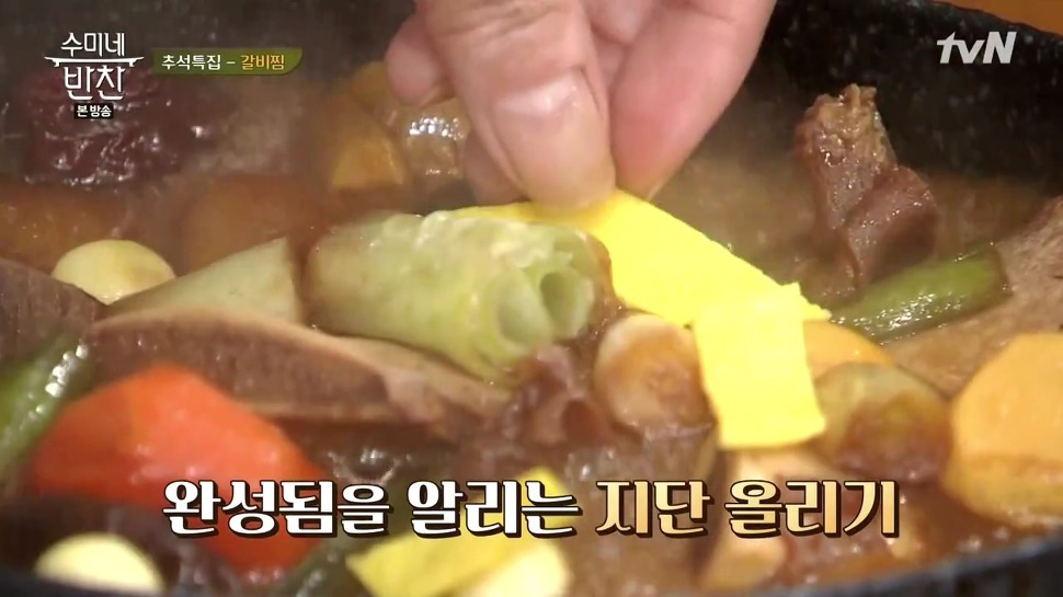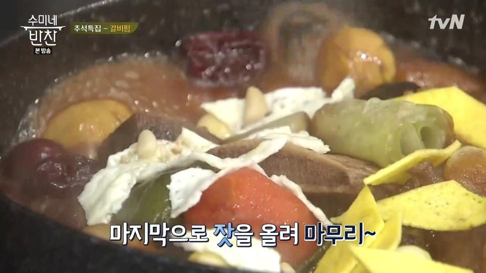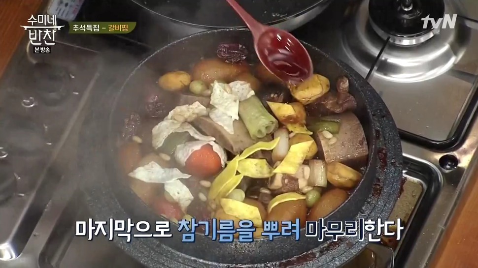 21. 불을 끄고 마무리로 참기름을 아주 살짝만 뿌리면 갈비찜 맛있게 만드는 법 김수미 소갈비찜 황금레시피가 완성됩니다.