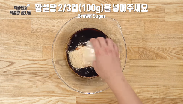 3. 볼에 진간장 1과1/3컵(260g), 황설탕2/3컵(100g), 맛술2/3컵(120g), 물 1과 1/3컵(240g), 간마늘1/4컵(40g), 간생강2/3컵(10g)을 넣습니다.