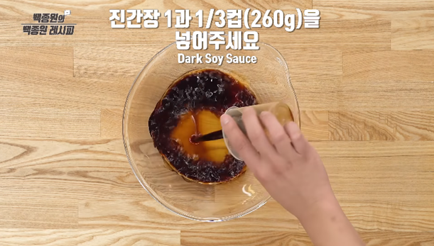 4. 즙에 간장 150ml를 넣고 잘 섞어서 양념장을 만들어주세요.