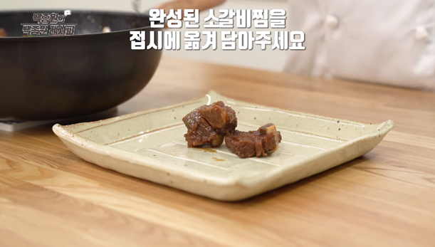 16. 완성된 소갈비찜을 접시에 이쁘게 옮겨 담으면 갈비찜 맛있게 만드는 법 백종원 소갈비찜 황금레시피가 완성됩니다.