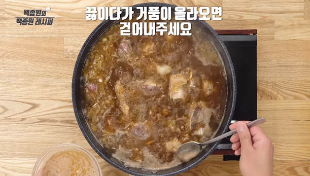 11. 끓이다가 거품이 올라오면 걷어내줍니다.
