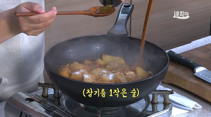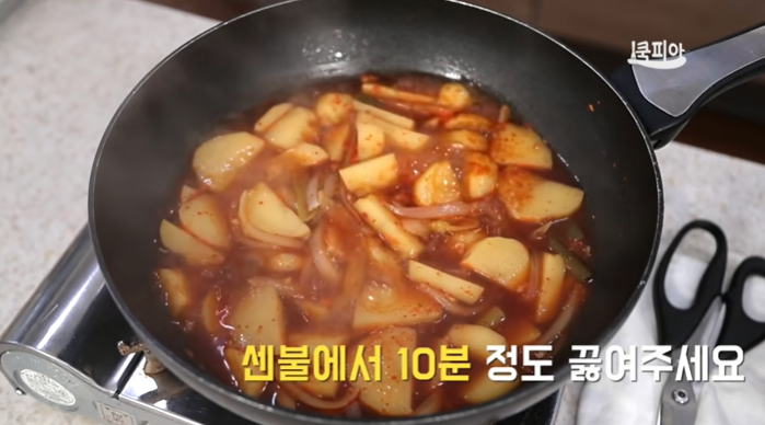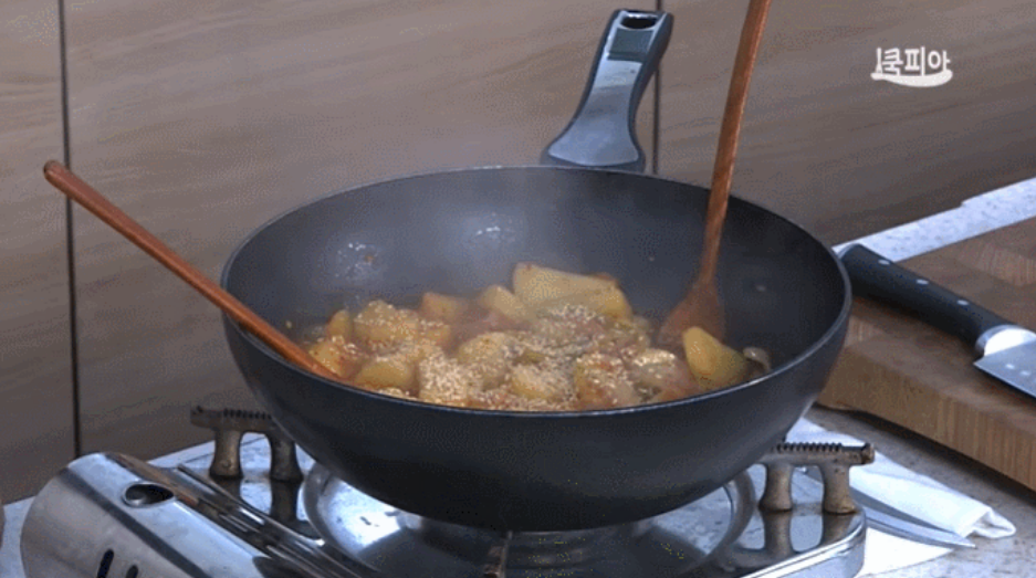 ▶ 중간중간 저어가며 익혀주세요. 양념장을 끓이면서 조리를 하면 감자 속까지 간이 다 스며듭니다.