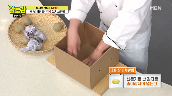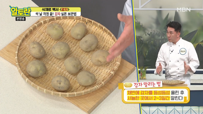 오늘 레시피에서는 감자 삶는 방법과 더불어 감자 보관법도 알려주셨는데요, 감자를 신선하고 오래 보관하기 위해서는 먼저 감자의 수분을 살짝 말리는 것이 좋다고 해요.