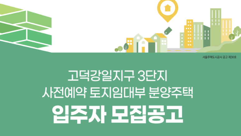 고덕 강일 3단지 반값 아파트 사전청약 자격을 정리해보도록 하겠습니다. 분양가 3억 원대의 토지임대부 분양주택인 서울 강동구 고덕 강일 3단지 특별공급분에 대한 사전청약이 27일 시작됐습니다.