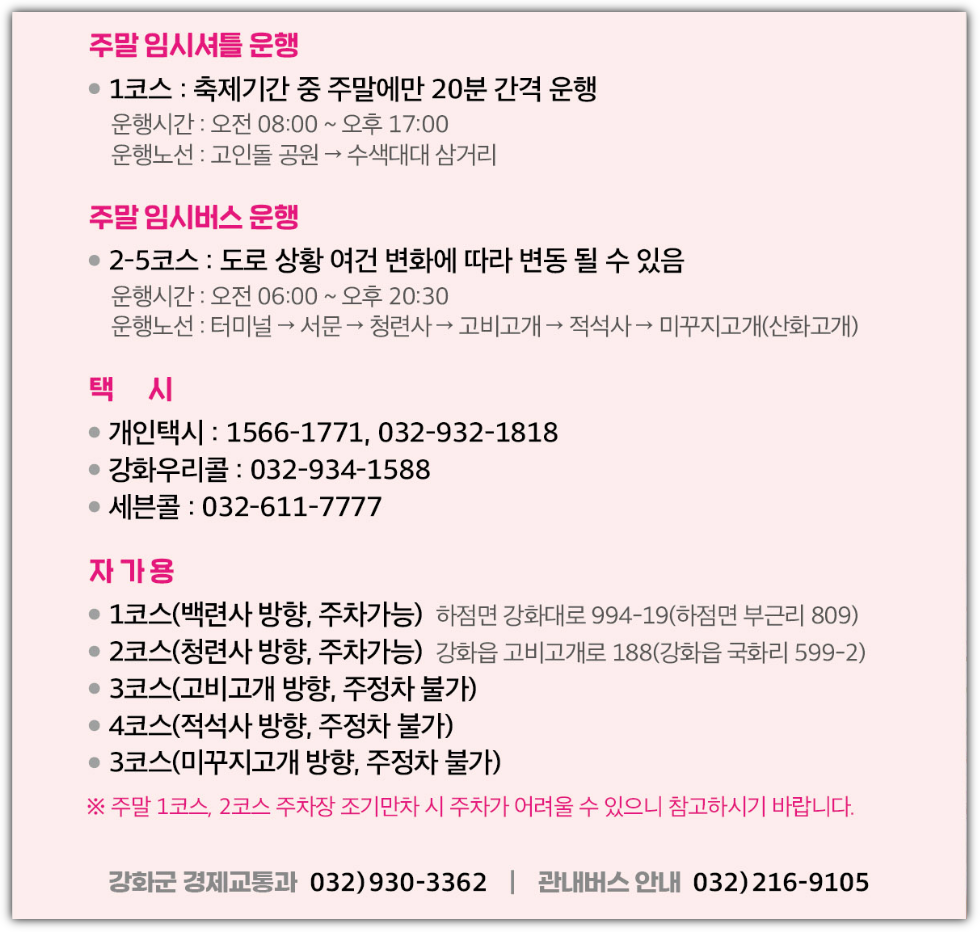 고려산 진달래축제 임시 셔틀 버스 운행 / 주차장 안내