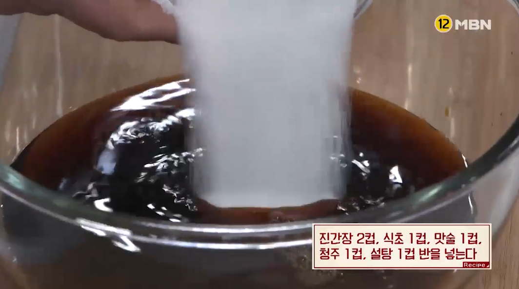절임물 재료 : 진간장 2컵, 식초 1컵, 맛술 1컵, 청주 1컵, 설탕 1컵반