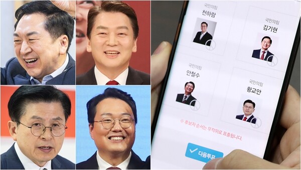국민의힘 전당대회 규정 상 1차 투표에서 1위 후보가 50% 이상 득표하지 못할 경우 1위와 2위가 결선투표를 진행하게 되는데, 현재 여론조사 결과를 보면 김 후보와 안 후보가 결선에 오를 가능성이 높다는 것이 전문가들의 분석입니다.