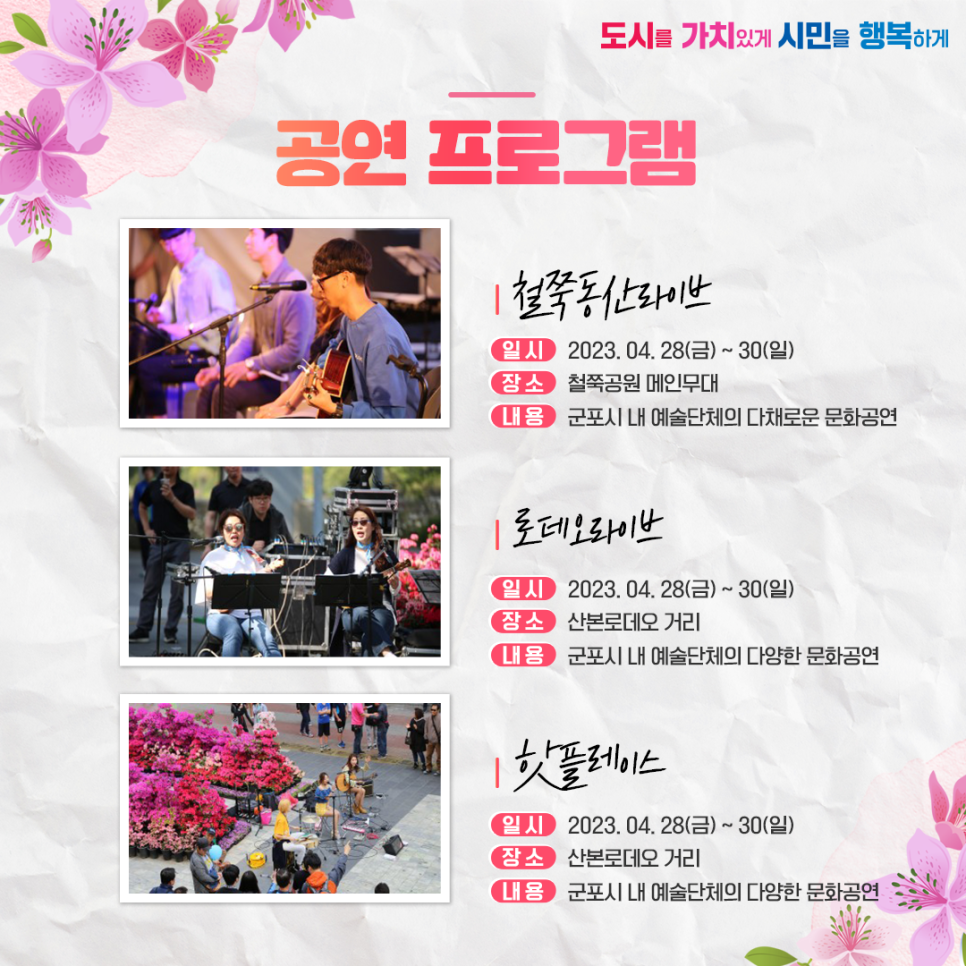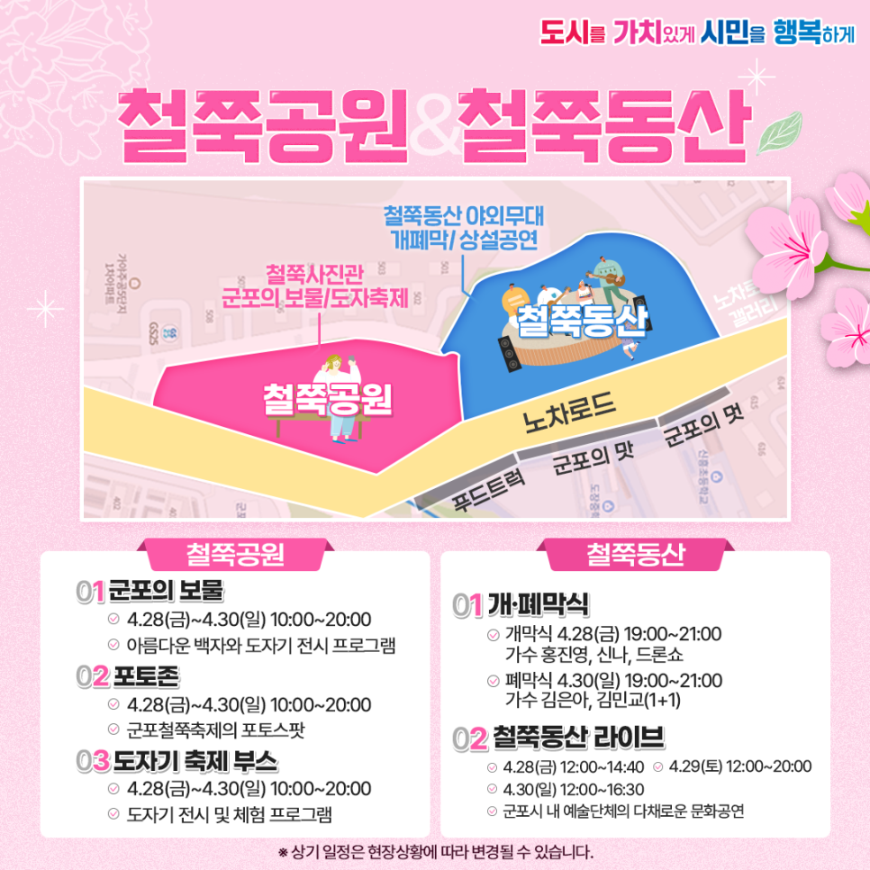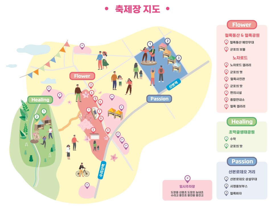 ● 장소 철쭉동산, 철쭉공원, 초막골생태공원, 산본로데오 거리 등 군포시 일원
