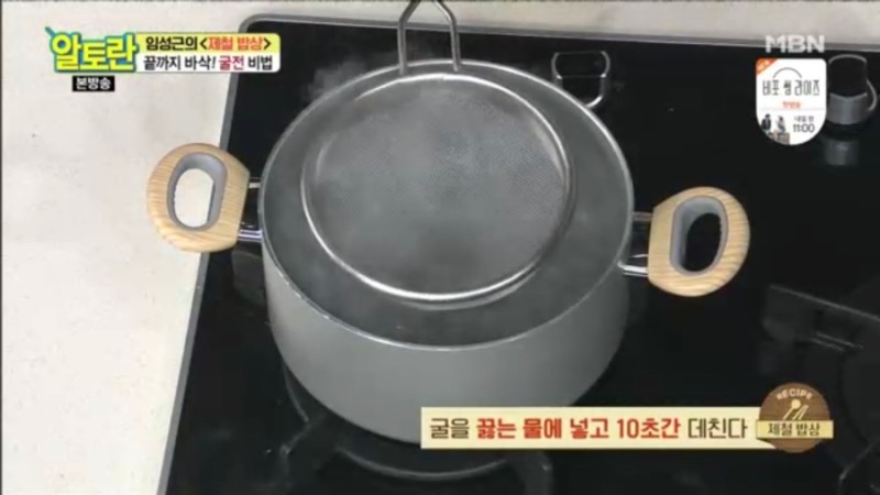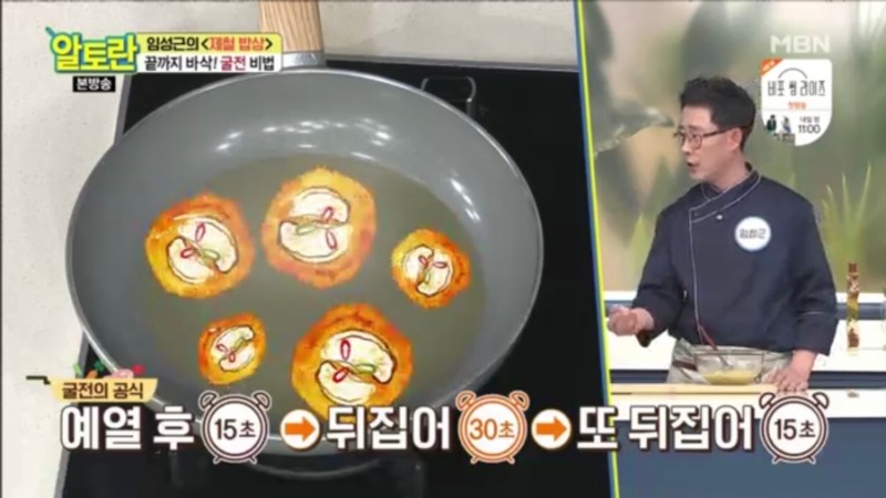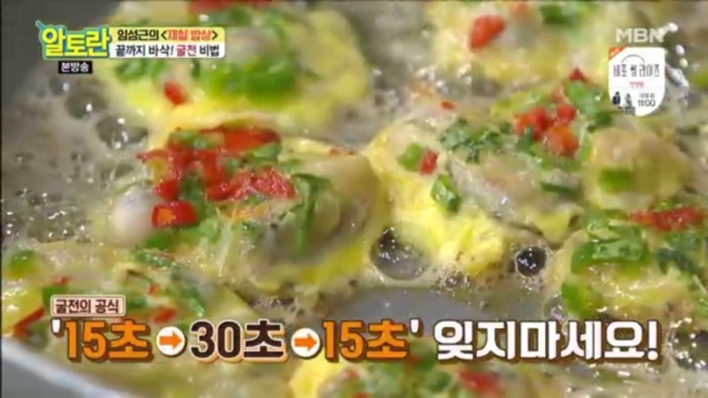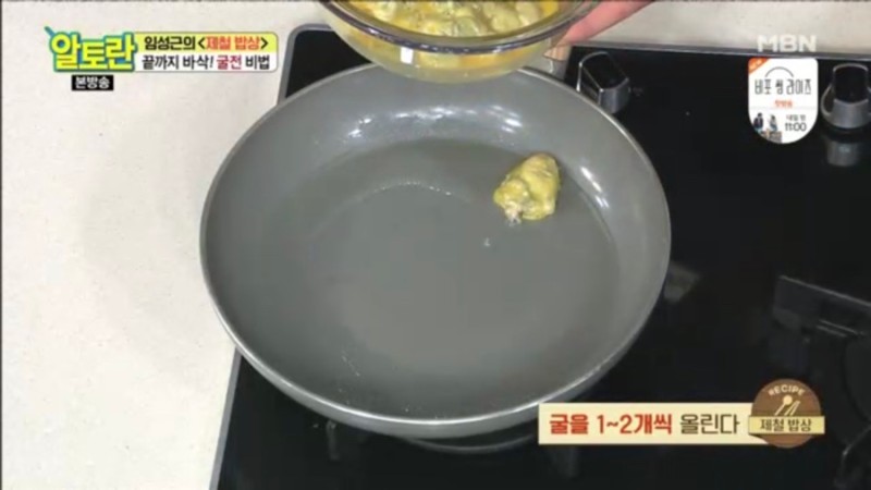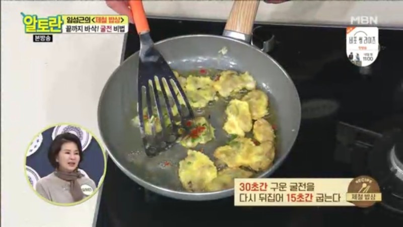 12. 굴전을 올리고 15초 지나면 뒤집어 30초 굽습니다.