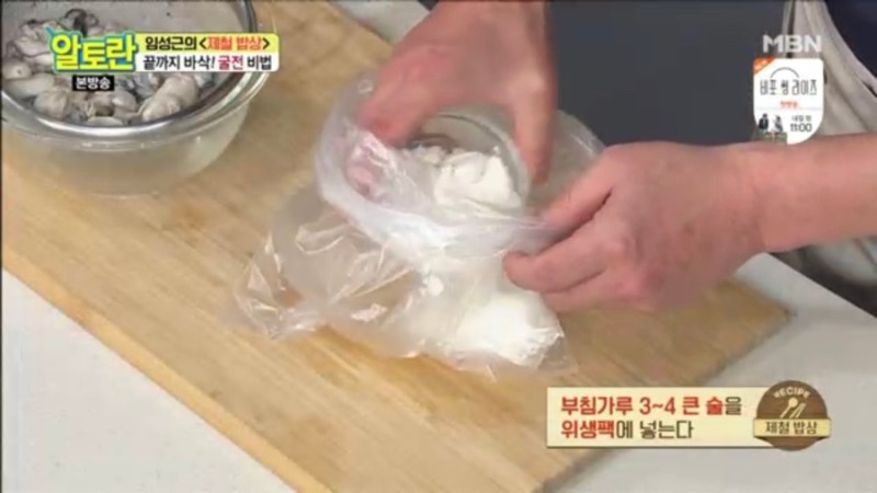 3. 부침가루 3~4 큰 술을 위생팩에 넣습니다.