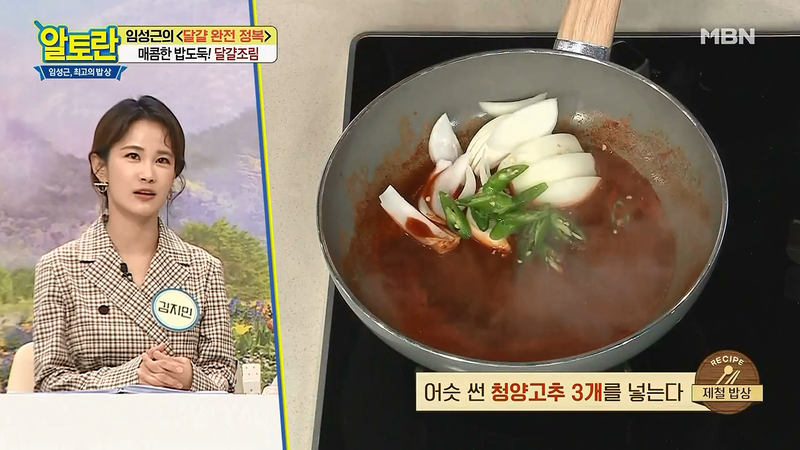 2. 양념장이 끓으면 큼직하게 썬 양파 1개, 어슷 썬 청양고추 3개를 넣고 양념장이 반으로 졸을 때까지 끓입니다.