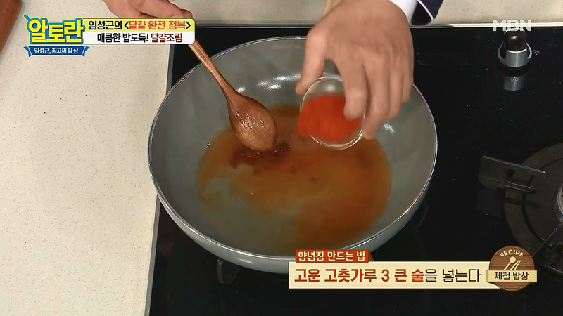1. 팬에 양념장 재료를 넣고 센 불로 끓입니다.