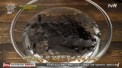 1. 미역 50g을 약 30분간 물에 불립니다.