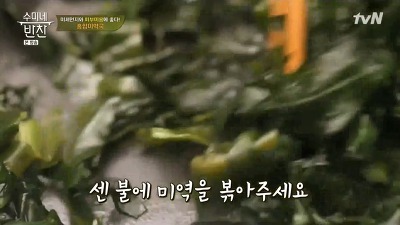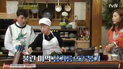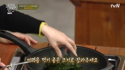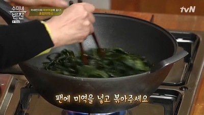 3. 미역을 먹기 좋은 크기로 잘라 준 뒤 센불에 미역을 볶습니다.