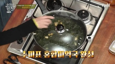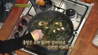 5. 홍합을 넣은 뒤 5~6분 끓여주다 불을 꺼 주는데요, 오늘 소개해 드리는 미역국 맛있게 끓이는 방법 포인트는 홍합을 오래 끓이면 질겨지므로 살짝만 익혀준다는 것이예요.
