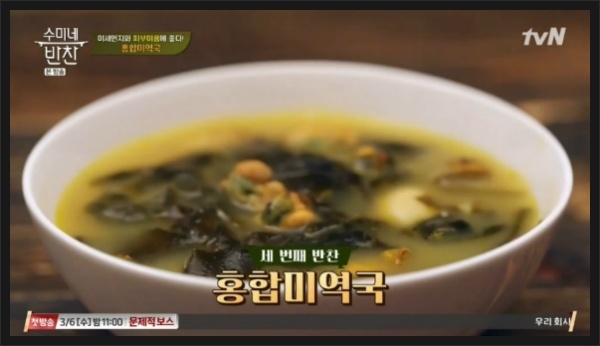 6. 예쁜 그릇에 담아내면 홍합 미역국 맛있게 끓이는 방법 황금레시피가 완성됩니다.