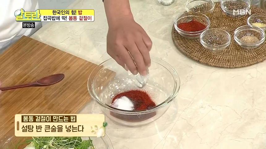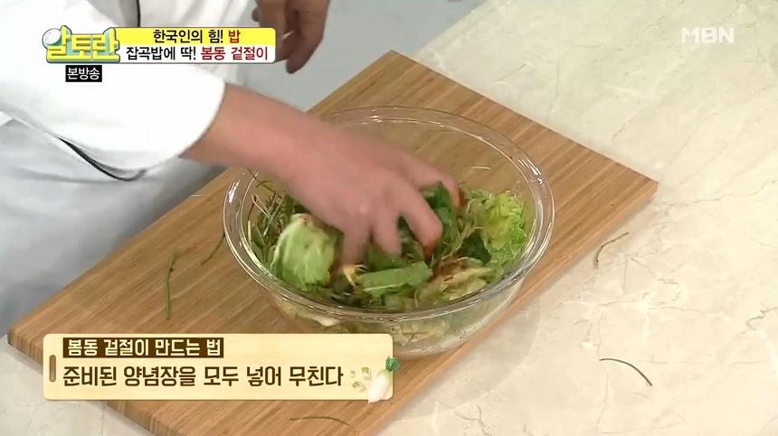 ▶ 재료 : 봄동, 달래, 멸치액젓, 고춧가루, 매실청, 간마늘, 설탕, 물엿, 통깨