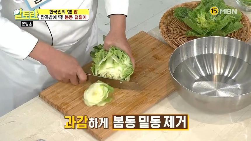 2. 생으로 먹어도 단맛이 최고인 봄동은 겨울과 봄에 수확한답니다. 봄동 겉절이 황금레시피 먼저 과감하게 봄동 밑동을 제거해주세요.
