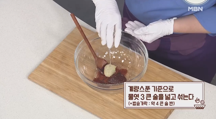양념재료 : 고춧가루 1큰술, 고추장 2큰술, 진간장 2큰술, 다진마늘 1큰술, 물엿 4큰술
