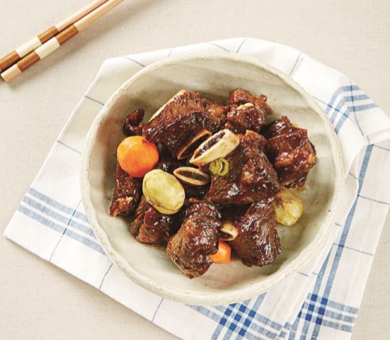 ▶ 소갈비찜에 들어가는 양념과 채소들은 소화를 돕고, 항산화 작용을 하며, 감기 예방에 효과적입니다.