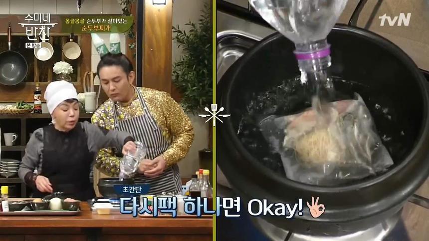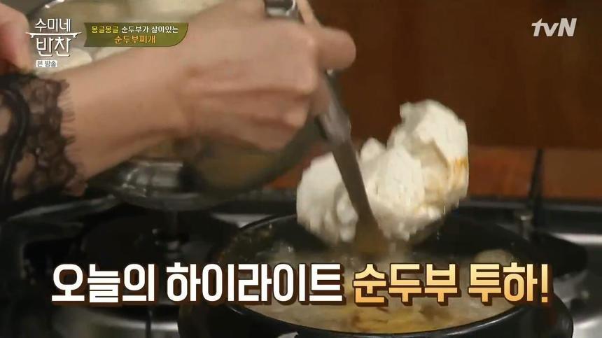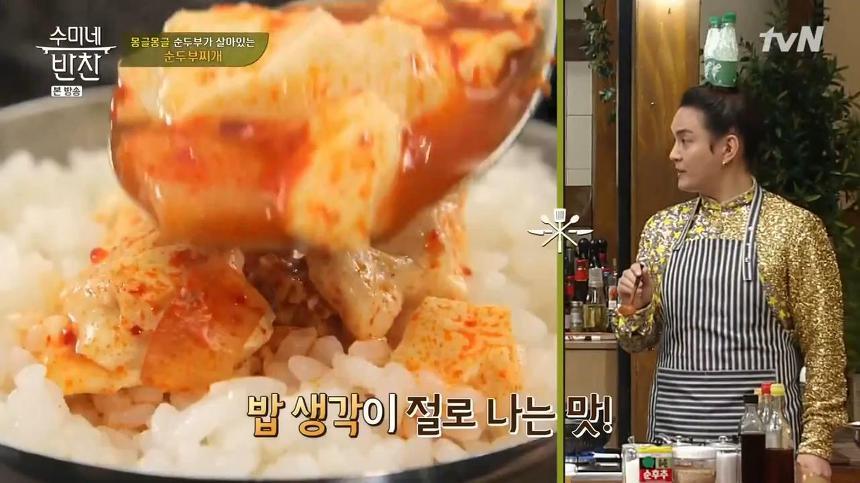 완성된 순두부찌개는 드시다가 밥에 비벼먹으면 꿀맛이 따로 없답니다.