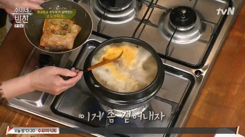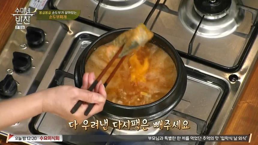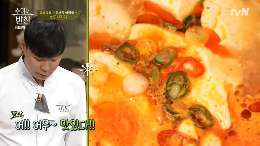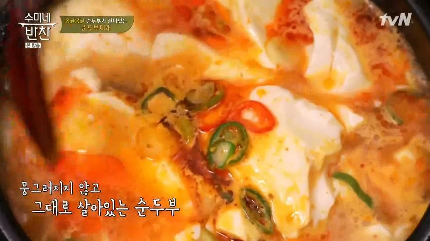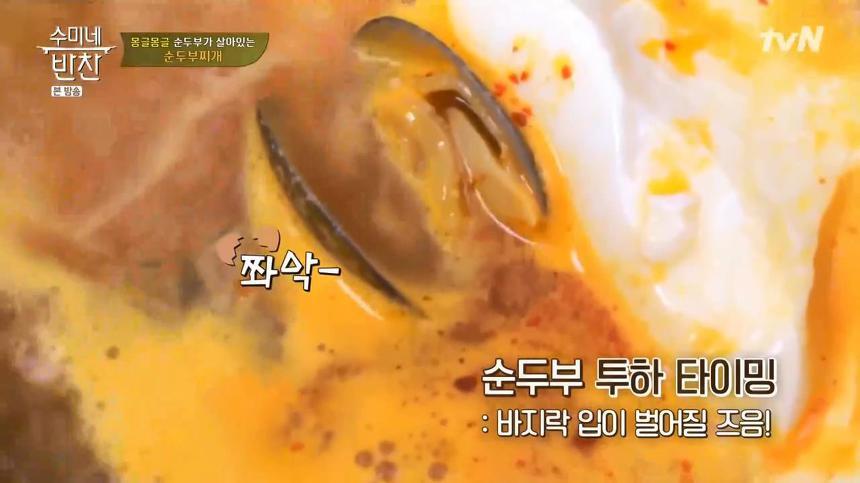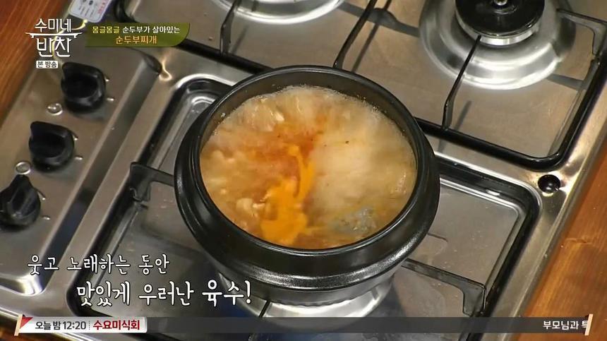 완성된 순두부찌개는 드시다가 밥에 비벼먹으면 꿀맛이 따로 없답니다.