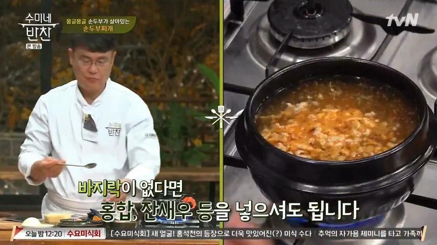 10. 순두부찌개 황금레시피 맛있게 끓이는법의 하이라이트라고 볼 수 있는 순두부를 뭉그러지지 않게 바지락 입이 벌어질 즈음 넣어주는 것이 포인트예요.