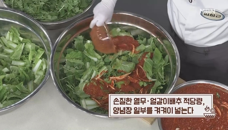 8. 다음으로 열무김치 맛있게 담그는법황금레시피의 또 다른 비법! 열무김치의 시원한 맛을 위해 시판용 사골 육수 2컵 반을 넣어 주는 것이예요. 즉, 풀국 대신 사골육수를 넣어 주는건데요, 열무김치에 사골육수를 넣으면 시원하면서도 깊은 맛이 배가 된다고 해요.
