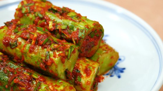 오이는 수분이 많은 채소로 몸에 열이 많을 때 먹으면 좋은 식재료예요. 특히 오이소박이의 부재료로 쓰이는 부추 역시 성질이 따뜻해 오이와 궁합이 잘 맞는데요, 부추의 맛은 시고, 맵고, 떫으며, 독이 없는 것으로 잘 알려져 있습니다. 또한 부추는 몸을 덥게하는 보온효과가 있어 몸이 찬 사람에게 좋기 때문에 감기도 예방하는 효과가 있고, 부추의 아릴성분은 소화를 돕고, 장을 튼튼하게 하며, 강장효과도 있답니다.