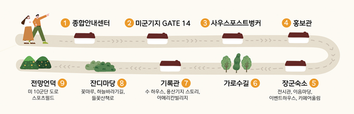 투어프로그램인 워킹투어는 용산공원 역사와 문화, 현재 모습을 전문해설사와 함께 살펴볼 수 있는 체험인데, 평일의 경우 수·목·금요일 오후 3시~4시30분 1회가 운영되고, 주말은 오전 10~11시30분, 오후 3시~4시30분 2회 운영된다고 합니다. 워킹투어 운영기간도 버스킹과 마찬가지로 5~6월, 9~11월입니다.