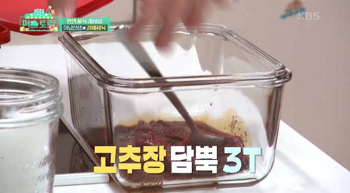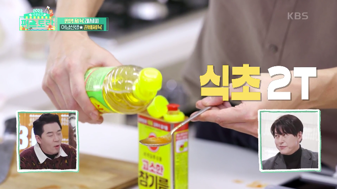 여기에 식초 두 숟갈, 참기름 한 숟갈을 넣고 섞어주는데 식초는 제육볶음 맛있게 만드는법 황금레시피의 또 다른 비법재료라고 볼 수 있어요. 식초를 넣으면 보관기간이 연장되고 연육 작용과 감칠맛을 올려주기 때문인데요, 식초의 신맛은 제육을 볶을 때 사라지기 때문에 걱정하지 않으셔도 된다고 해요.