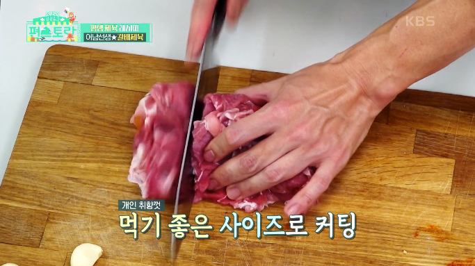 2. 핏물을 제거한 앞다리살을 먹기 좋은 사이즈로 잘라 주세요.
