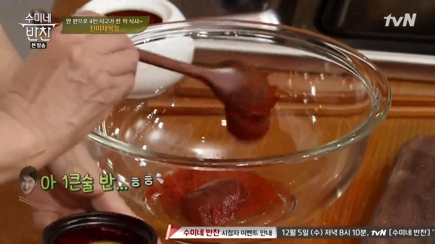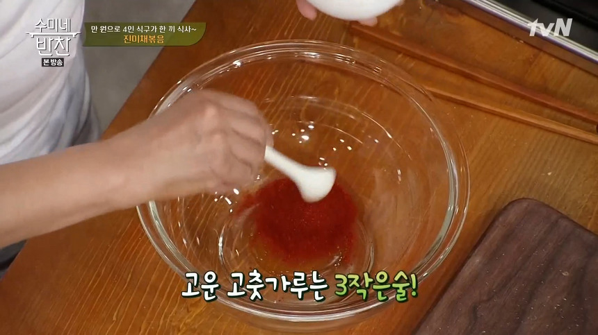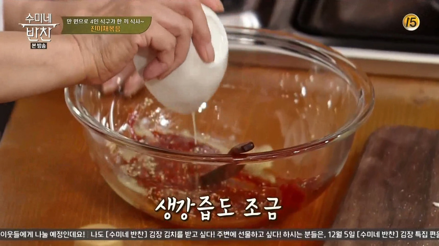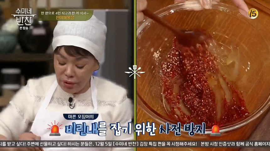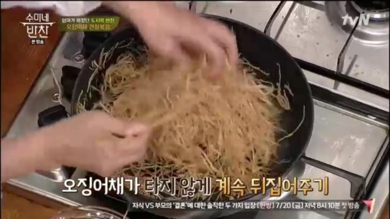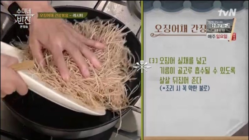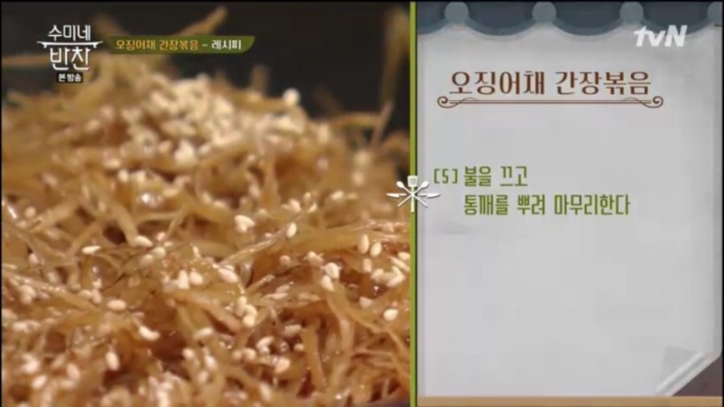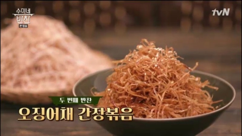 ※ 재료 : 진미채, 꿀, 고운 고춧가루, 고추장, 참기름, 통깨, 생강즙, 분무기