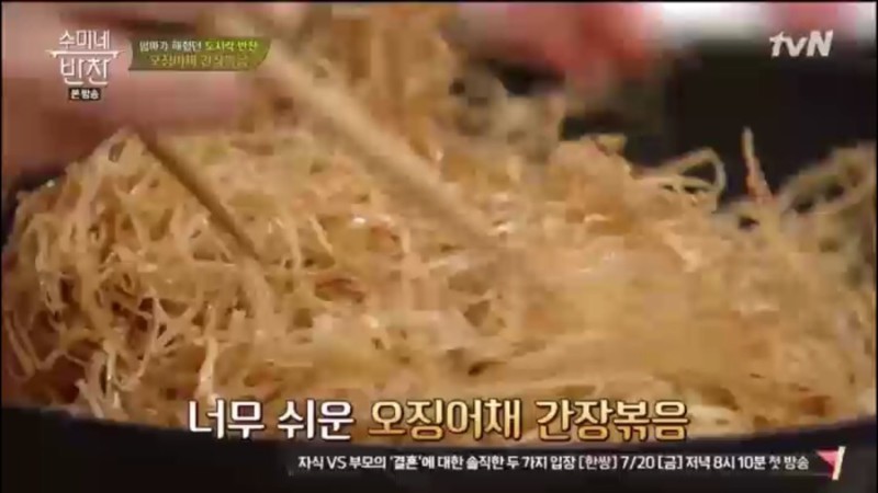 이럴 때는 일단 진미채를 절대 헹구지 마세요. 진미채 300g 정도를 짧은 시간 동안 끓인 다음 소주 1/4컵을 부어서 버무려 줍니다. 이후 내열 유리 용기에 담은 후에 랩으로 싸면 되는데요, 랩에 구멍을 내 공기가 통하게 하고 전자레인지에 4분 가열하세요. 이렇게 하면 비린 맛도 없고 진미채에 잡냄새도 없어집니다. 물에 헹궈 보관하면 먹을 때 비린 맛이 생기기 때문에 진미채 보관하실 때는 꼭 기억해두시기 바랍니다. 진미채볶음 황금레시피 간장 고추장 맛있게 만드는법을 자세히 소개해 드리도록 하겠습니다.