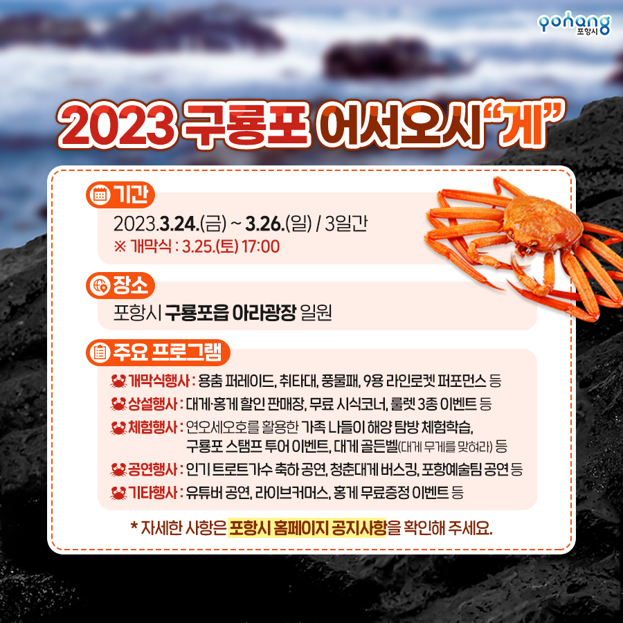 ❏ 축제명 : 2023 구룡포 어서오시"게" (구룡포 대게&붉은대게 축제)
