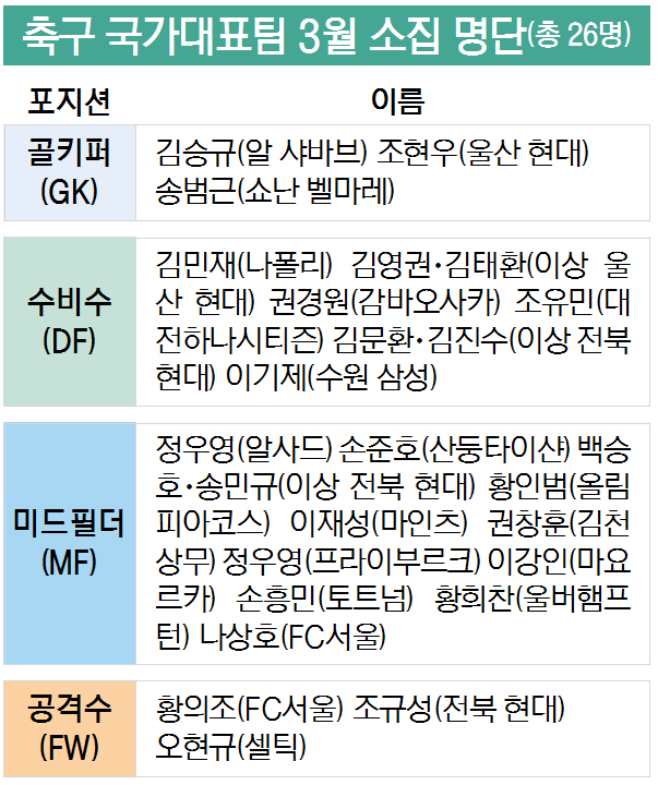 ▶GK=김승규(알밥) 조현우(울산) 송범근(벨마레)