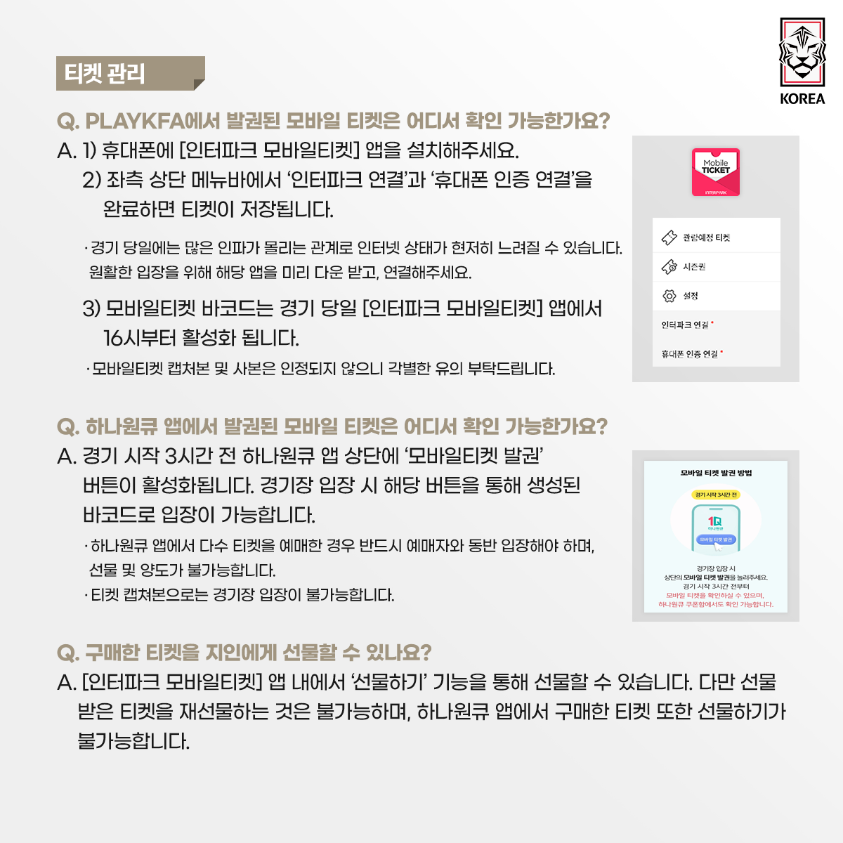 플레이KFA 회원을 대상으로 선예매를 먼저 진행하며 ‘Red’ 회원은 오후 7시부터, ‘Black’ 회원은 오후 8시부터 구매할 수 있습니다.