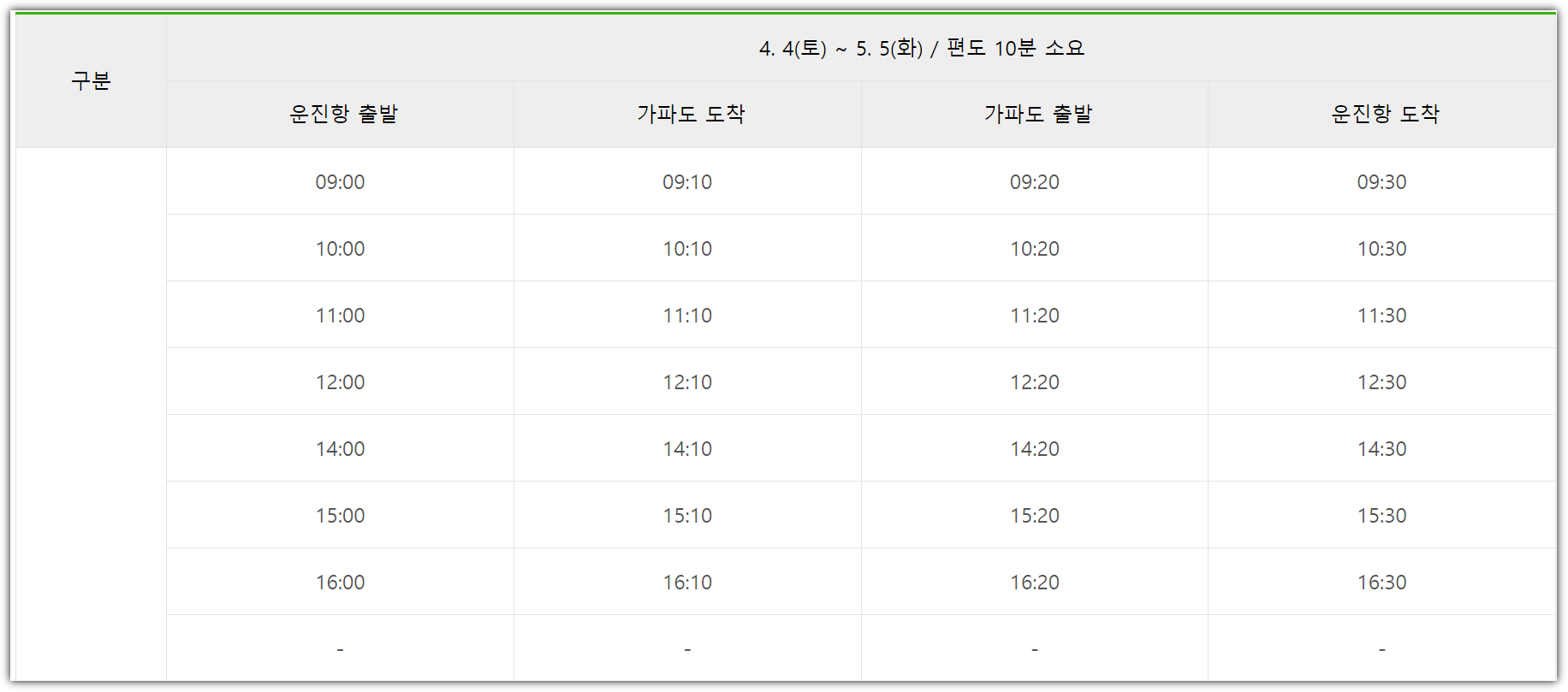 ※ 기상악화 등 현장 여건에 따라 운항시간이 변동될 수 있음.
